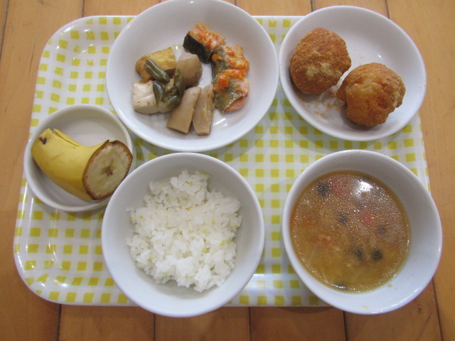 今日は広域避難訓練を想定して防災食の讃岐うどんを提供しました。防災食なので濃いめの味付けで食べ慣れない子ども達もいましたが、「どんなときに食べるの?」と聞くと、「地震がきて避難した時、食べるものがなかったら食べるんだよ」と防災食について理解しいている様子。感想を聞くと「おいしい!お代わりしたよ」と言う子もいれば、「ラーメンのほうが好きだな」「厨房の先生が作ってくれた方がおいしいな」等々、子ども達から色々な意見を聞くことが出来ました。子ども達の意見を聞き取り、今後の防災食選びの参考にしていきたいと思います。ご家庭でも、どんな味だったか子ども達に聞いてみて下さいね♪